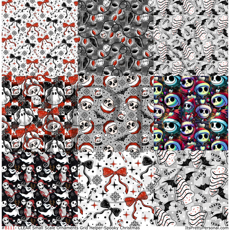 #B111- CLEAR Small Scale Ornament Grid Helper-Spooky Creepy Christmas- 12x12 CLEAR Pattern Vinyl