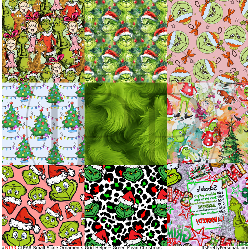 #B133- CLEAR Small Scale Ornament Grid Helper-Mean Green Christmas-12x12 CLEAR Pattern Vinyl