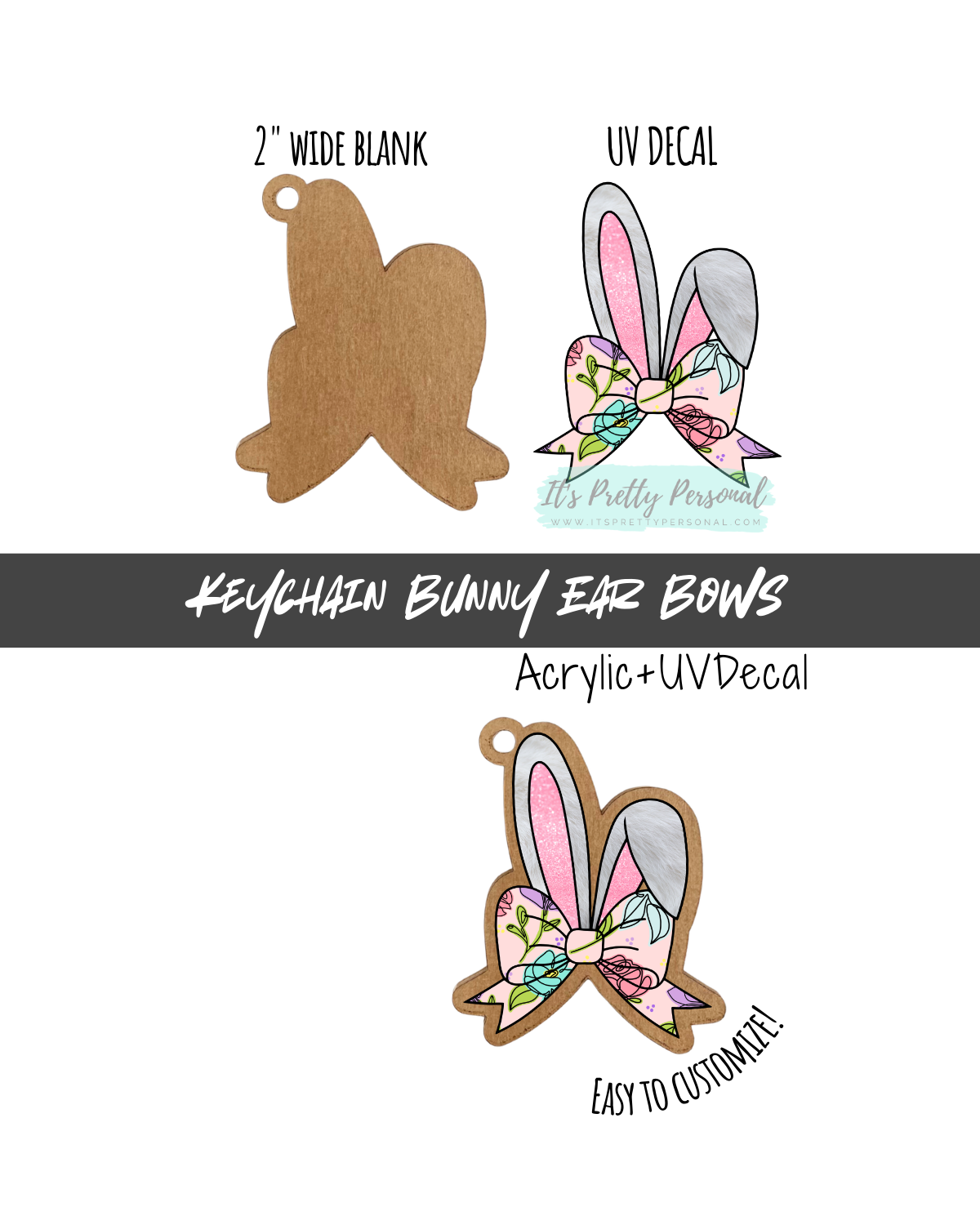 #27 KEYCHAIN BLANK- "BUNNY EAR BOWS"- UV DTF + Acrylic Blank