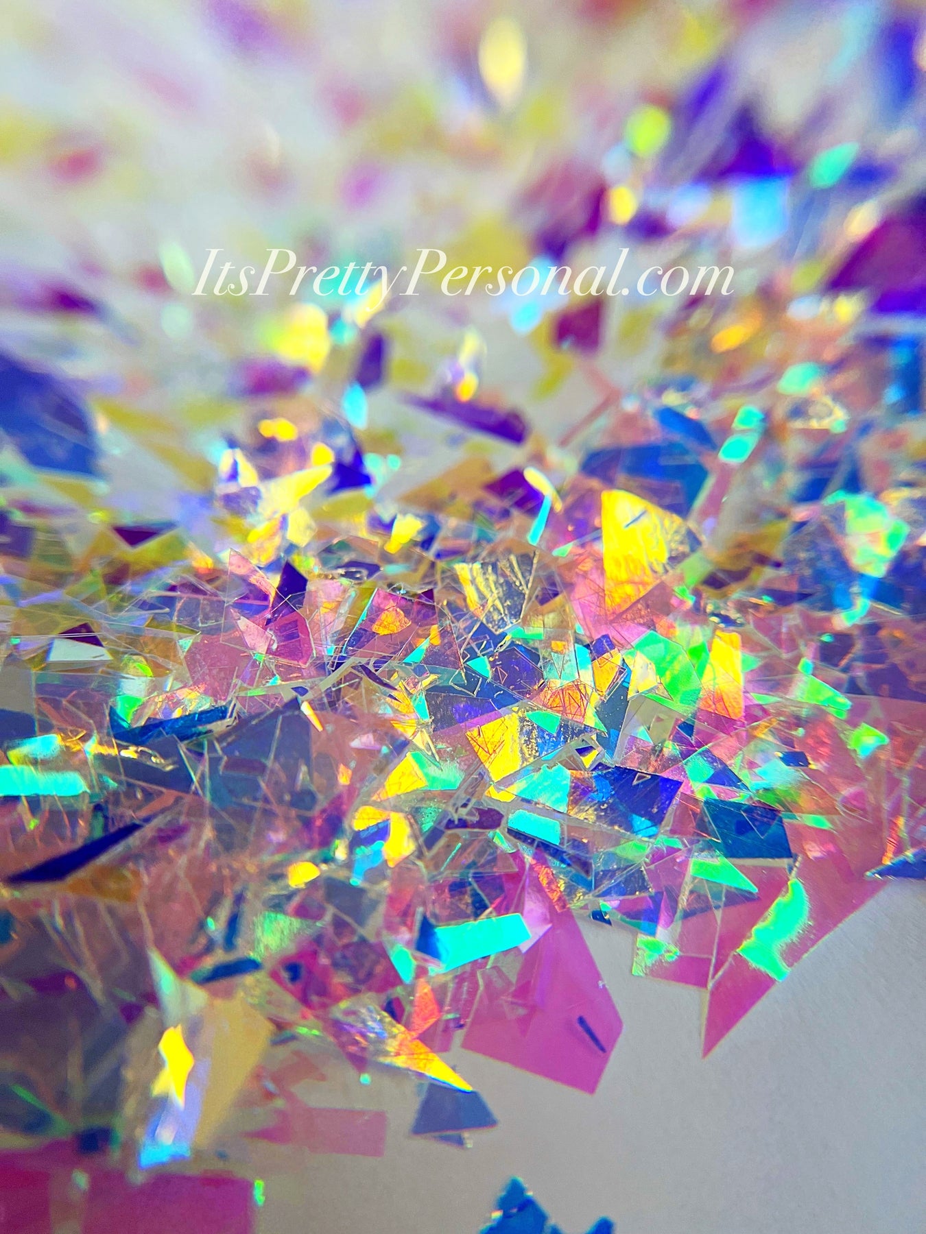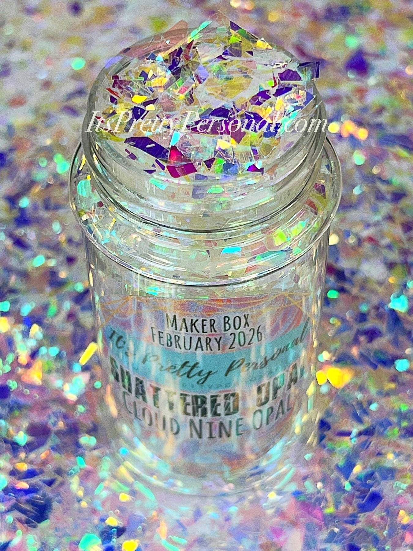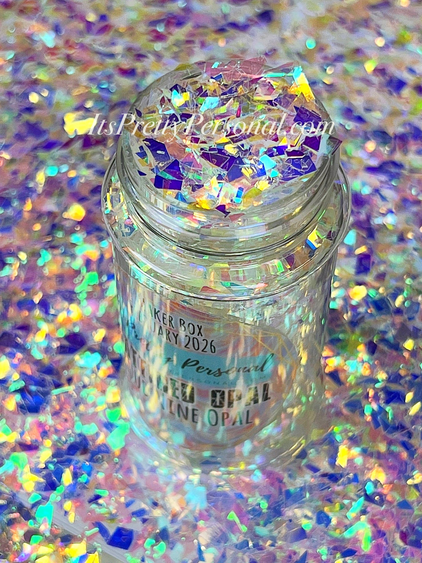 Each shaker is packed with large, shattered polyester film opal flakes that reflect light in the most dreamy, multidimensional way — think holographic shards, icy opal flashes, and iridescent confetti brilliance all in one.