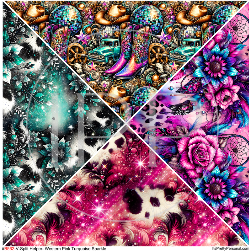 #B562-V-Split Helper-Western Pink Turquoise Sparkle- 12x12 Pattern Vinyl