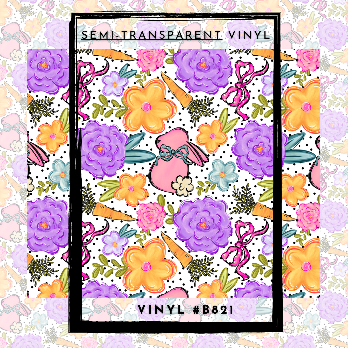 #B821- SEMI-TRANSPARENT- Bright Bow Bunny Floral -12x12 Pattern Vinyl