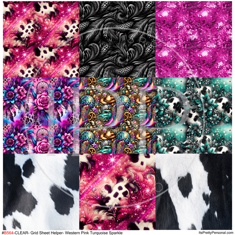 #B564-CLEAR Small Scale Ornament Grid Helper-Western Pink Turquoise Sparkle- 12x12 CLEAR Pattern Vinyl