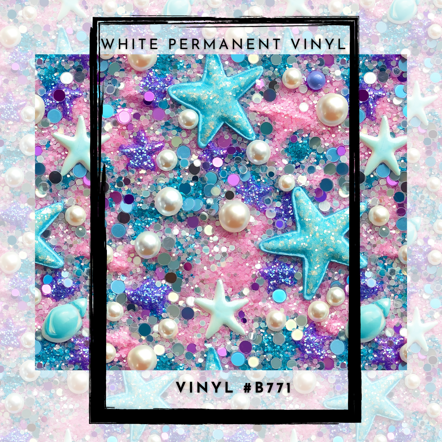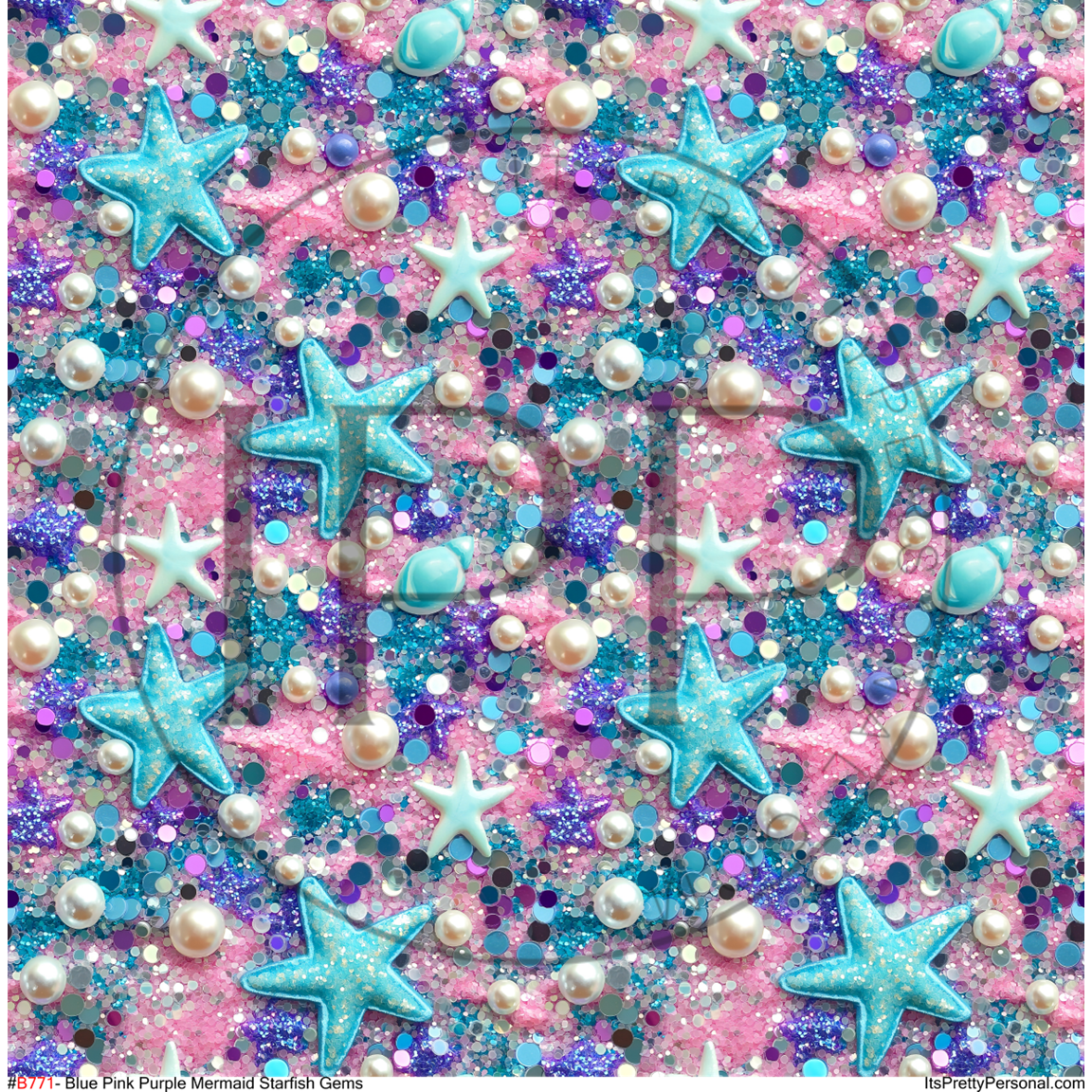 #B771- Blue Pink Purple Starfish Sequins -12x12 Pattern Vinyl