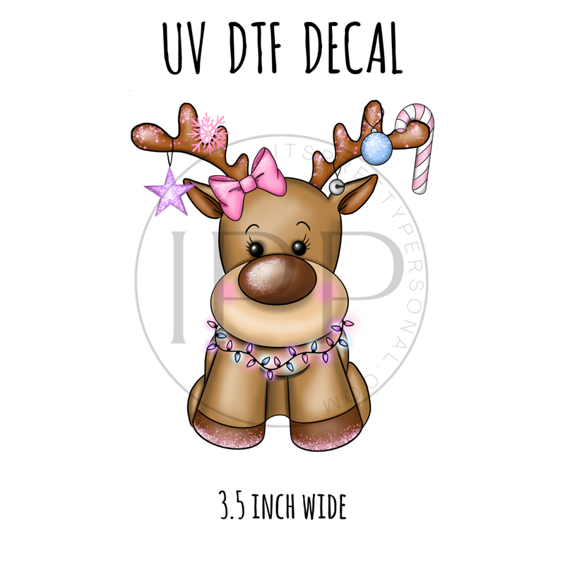 #625 Cute Bow Pastel Reindeer- 3.5 inch wide UV DTF decal