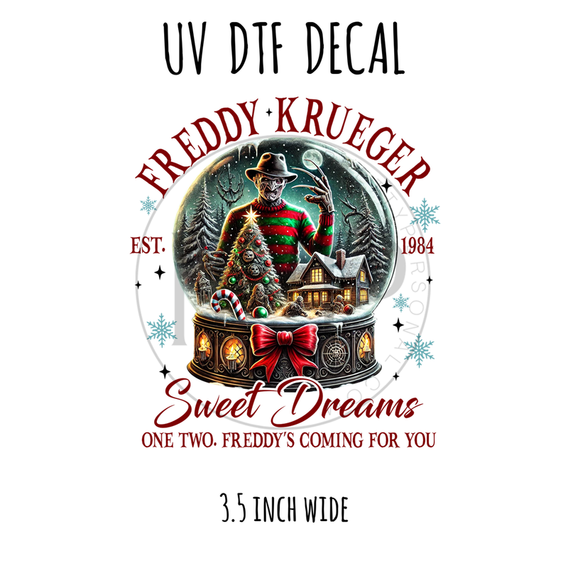 #650 Horror Christmas Snow globe Sweet Dreams - 3.5 inch wide UV DTF decal