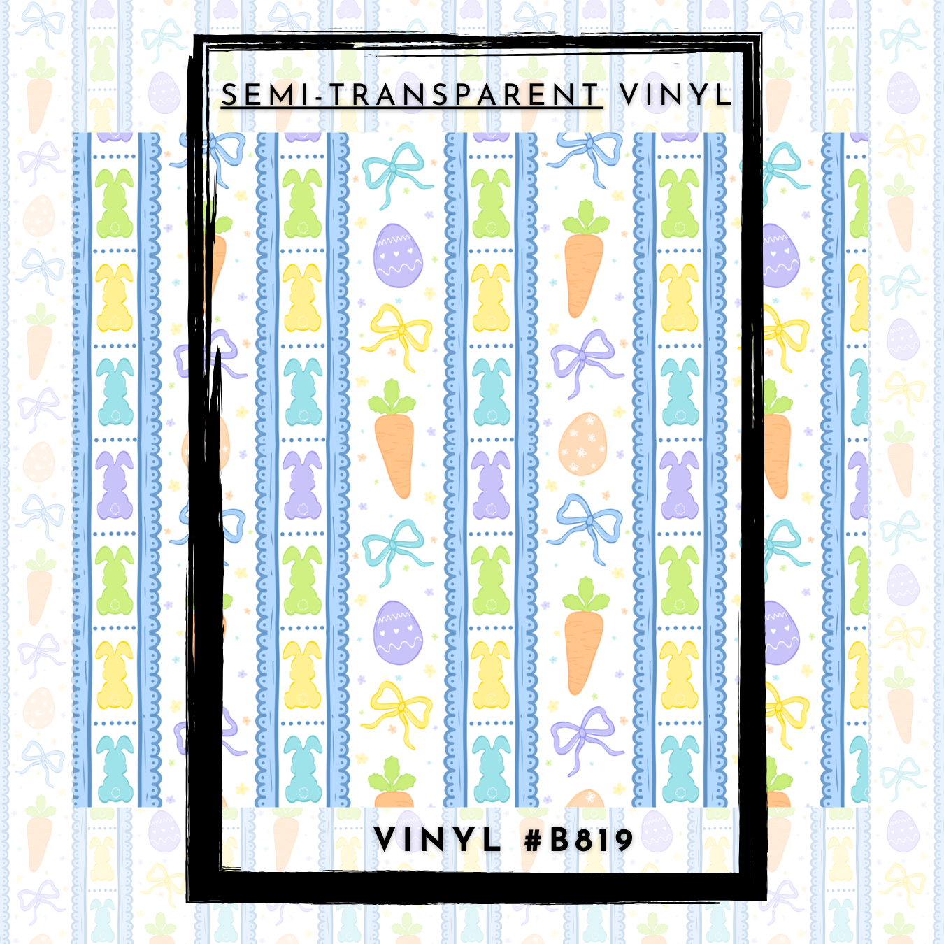 #B819- SEMI-TRANSPARENT- Blue Green Orange Spring Easter Bunny -12x12 Pattern Vinyl