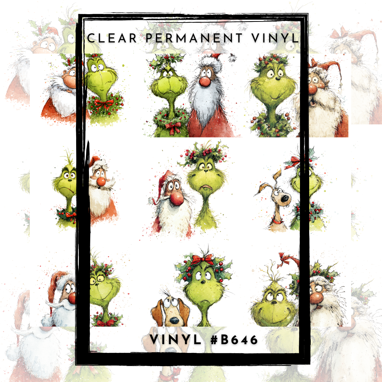 #B646-CLEAR Small Scale Ornament Grid Helper-Mean Green Santa Christmas -12x12 CLEAR Pattern Vinyl