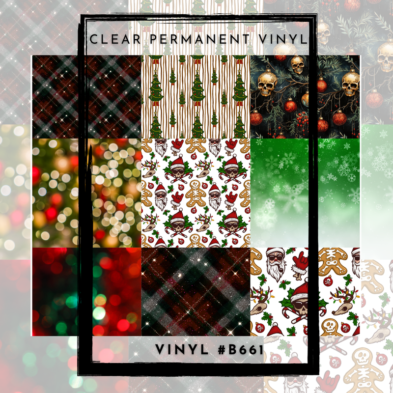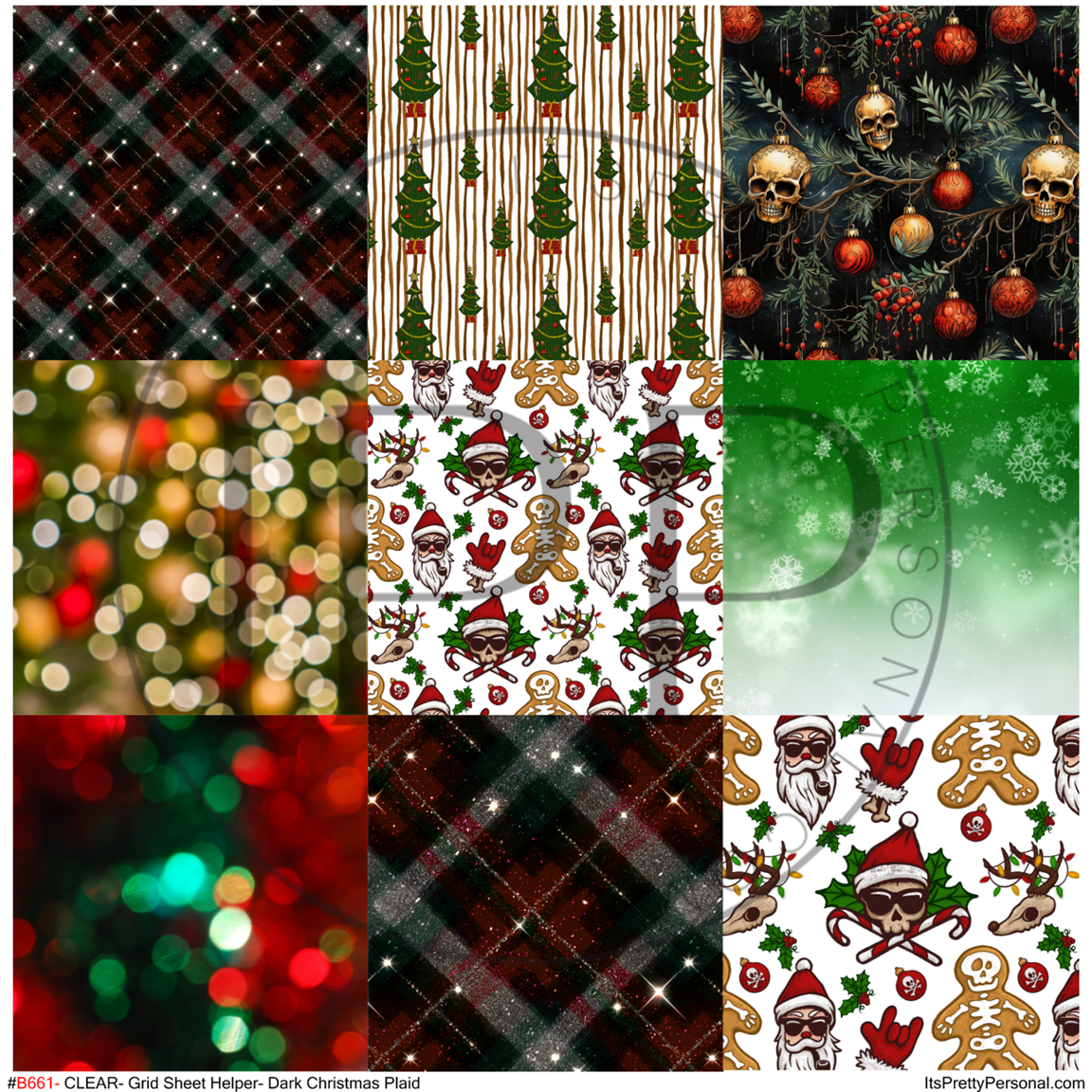 #B661-CLEAR Small Scale Ornament Grid Helper-Dark Christmas Plaid-12x12 CLEAR Pattern Vinyl