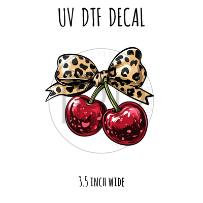 #674 Cherry Leopard Bow- 3.5 inch wide UV DTF decal