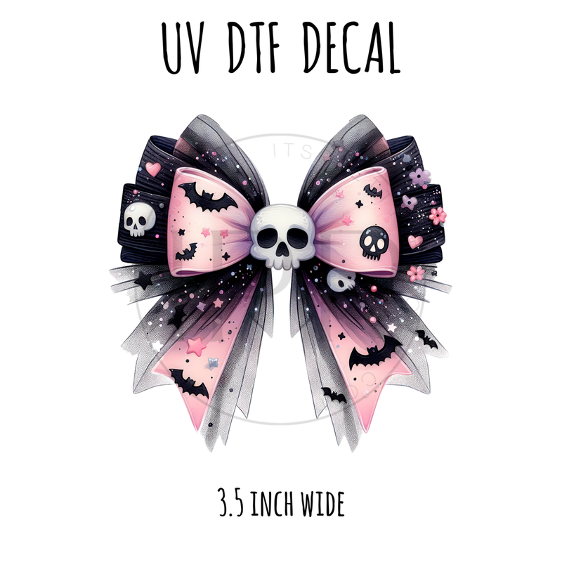 #511 Pink Skull Spooky Bow- 3.5 inch wide UV DTF decal