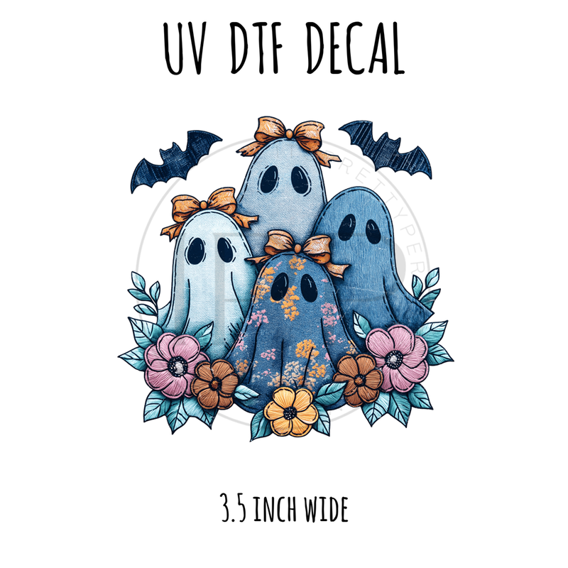 #590 Patchwork Jeans Girly Bow Ghost- 3.5 inch wide UV DTF decal
