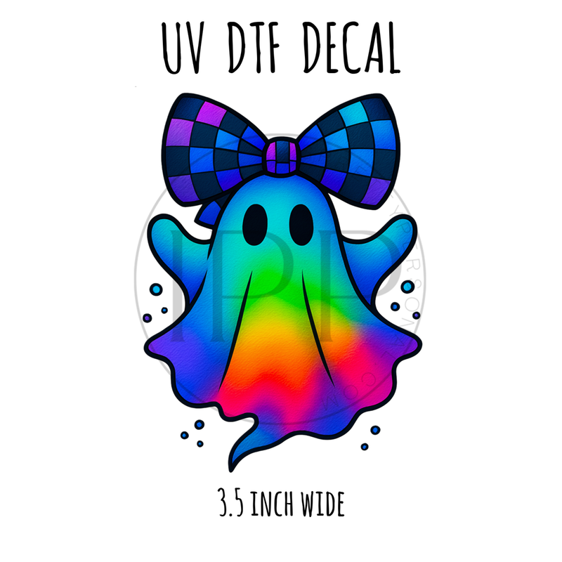 #607 Neon Halloween Ghost Bow - 3.5 inch wide UV DTF decal