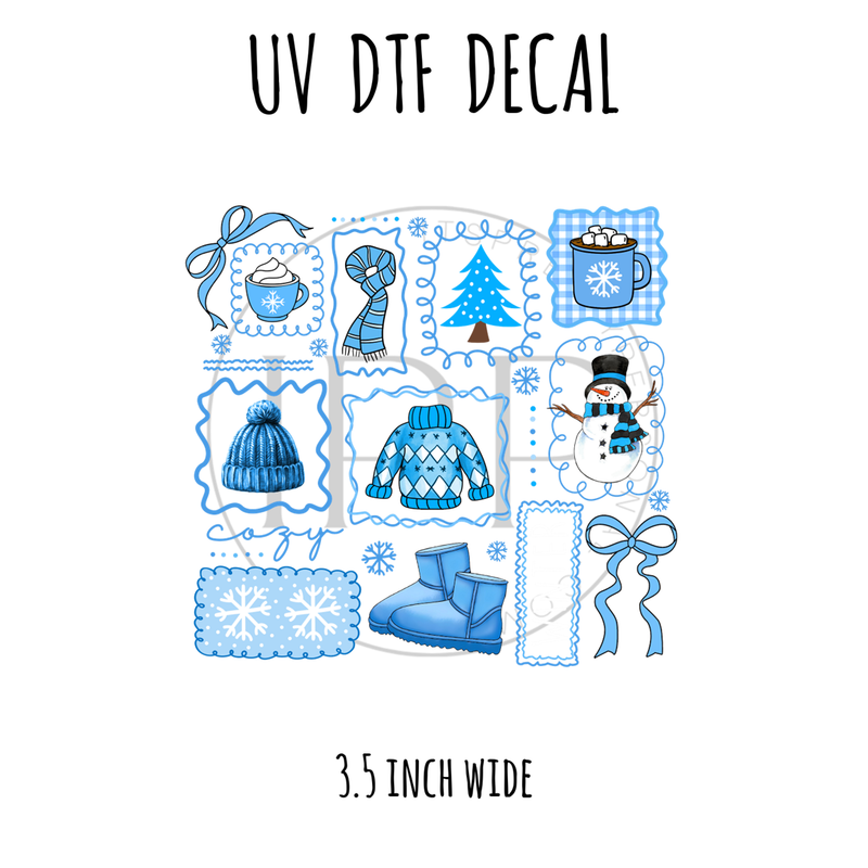 #620 Blue Winter Cold Weather- 3.5 inch wide UV DTF decal
