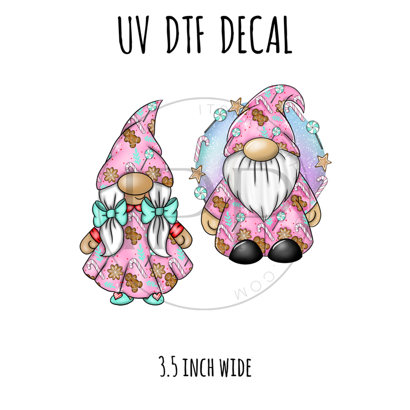 #626 Pastel Gingerbread Gnome Couple- 3.5 inch wide UV DTF decal