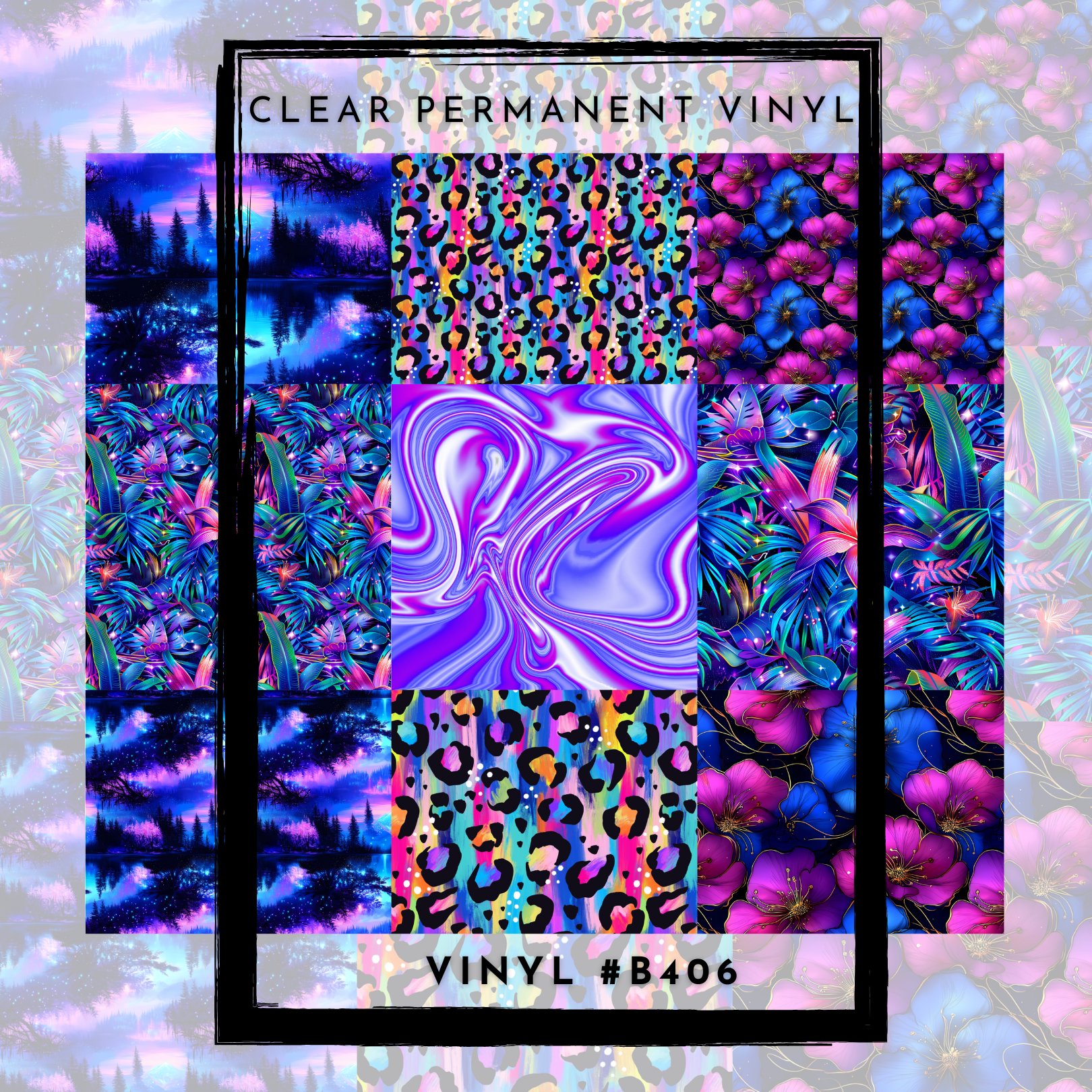 #B406-CLEAR Small Scale Ornament Grid Helper-Blue Purple Magical- 12x12 CLEAR Pattern Vinyl