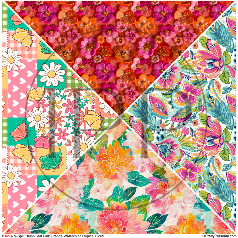#B453-V-Split Helper-Pink Teal Orange Floral - 12x12 Pattern Vinyl