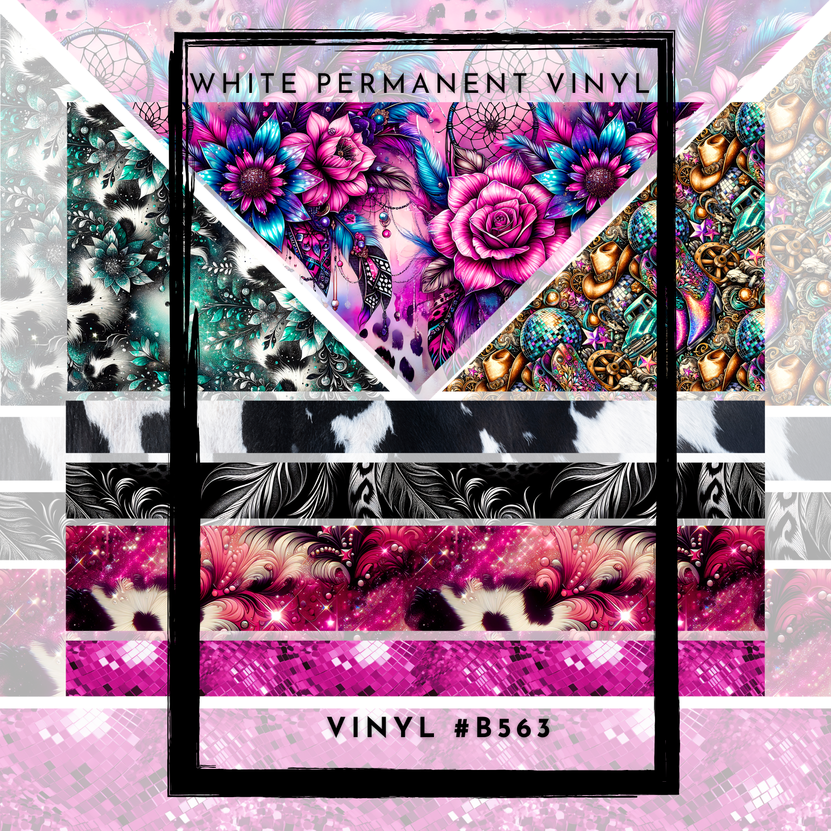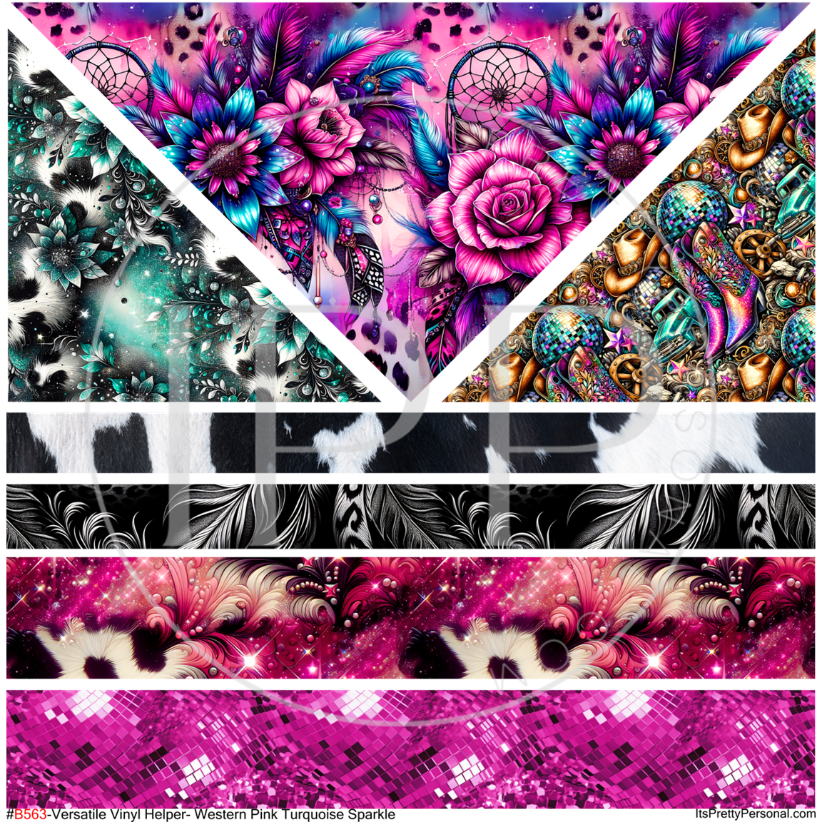 #B563-Versatile Vinyl Helper-Western Pink Turquoise Sparkle- 12x12 Pattern Vinyl