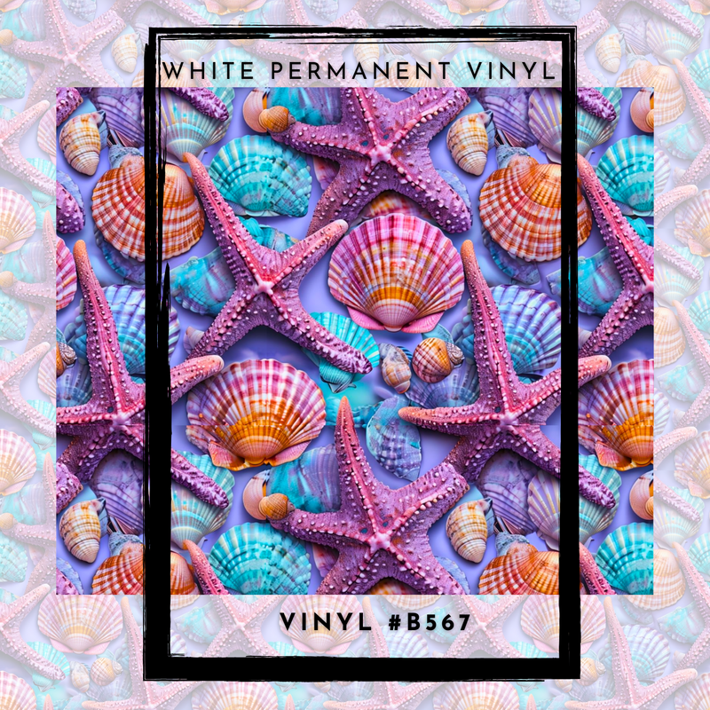 #B567- Blue Purple Coral Seashell and Starfish Ocean Life- 12x12 Pattern Vinyl