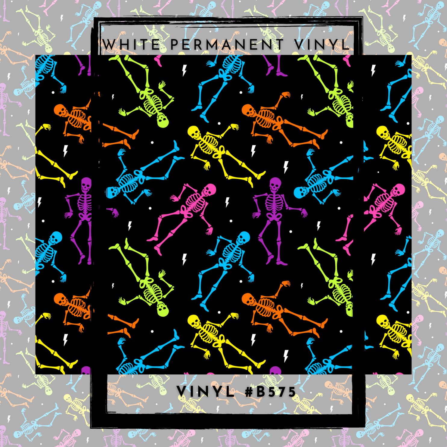 #B575-Neon Halloween Skeletons- 12x12 Pattern Vinyl