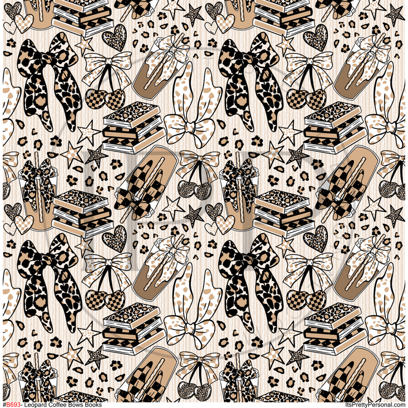 #B693- Leopard Coffee Books Bows -12x12 Pattern Vinyl