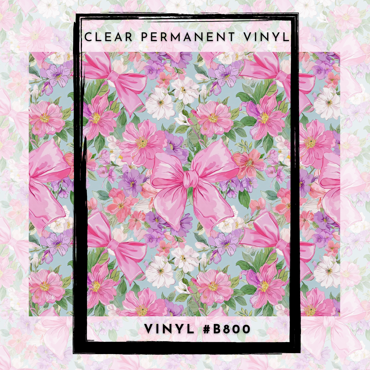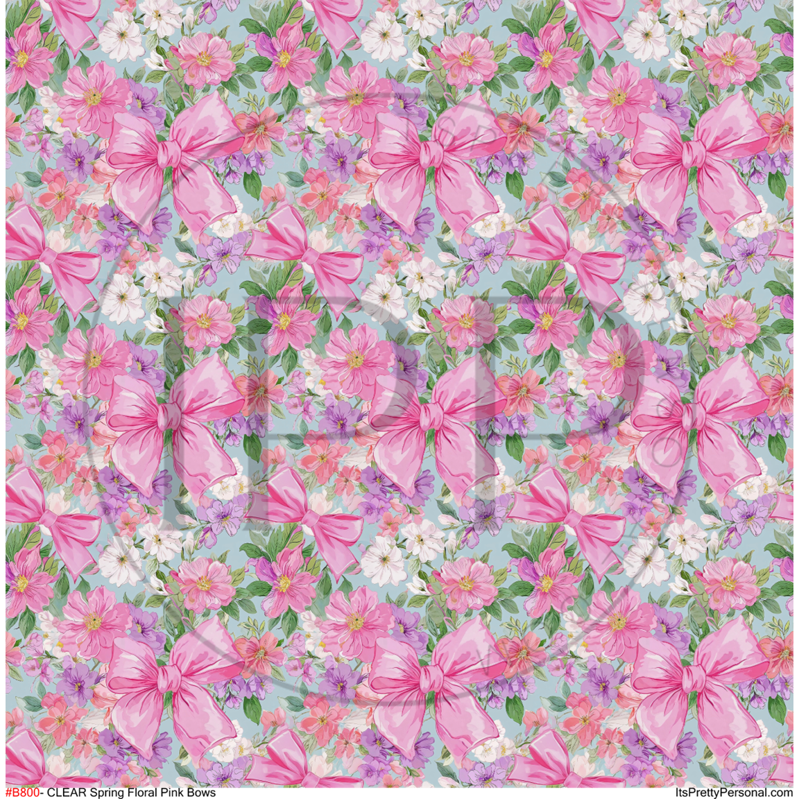 #B800- CLEAR Spring Floral Pink Bows-12x12 Pattern Vinyl