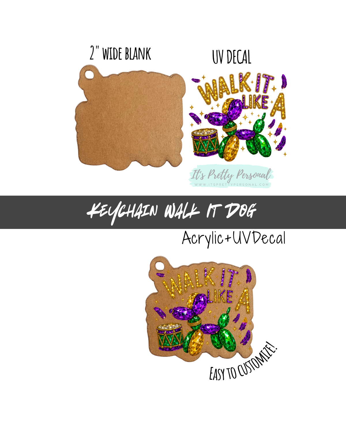 KEYCHAIN KIT- "WALK IT LIKE A DOG"- UV DTF + Acrylic Blank